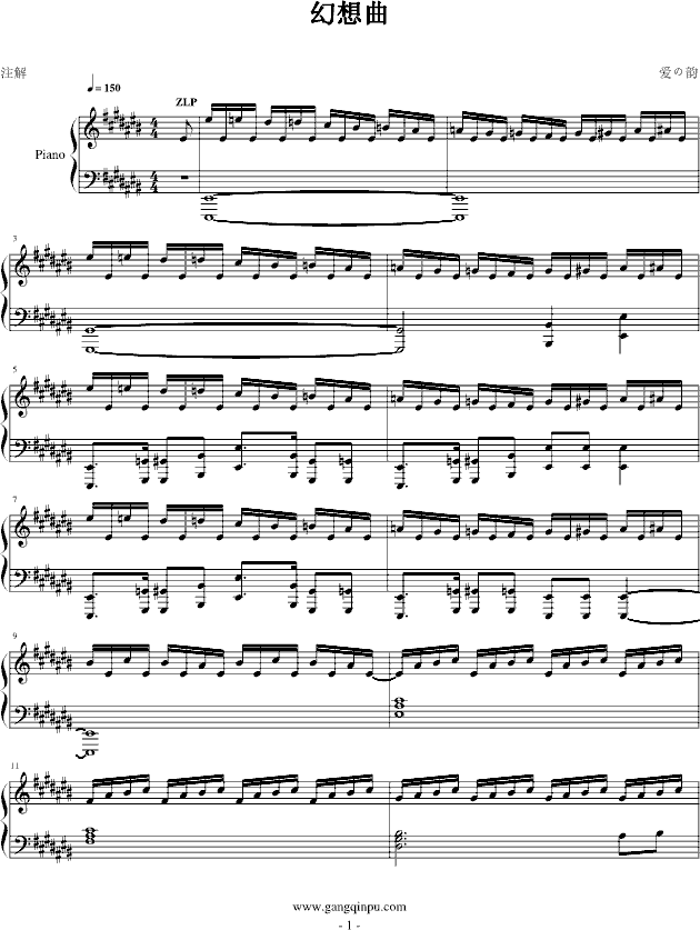 幻想曲钢琴谱上传者为网友上传,原创作者为网络转载,歌曲原唱歌手为佚名,本钢琴谱为图片格式,表现形式为五线谱,音乐性质为流行金曲。