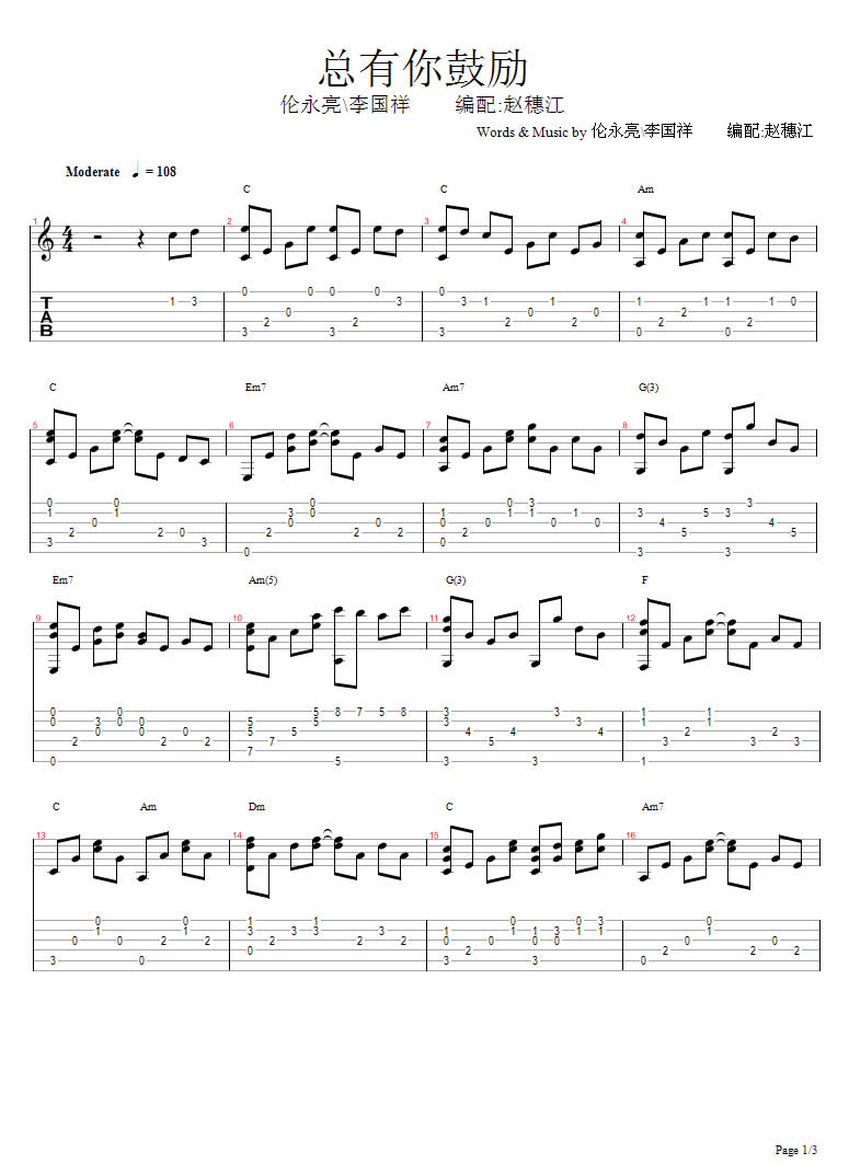 总有你鼓励钢琴谱上传者为网友上传,原创作者为网络转载,歌曲原唱歌手为佚名,本钢琴谱为图片格式,表现形式为五线谱,音乐性质为流行金曲。