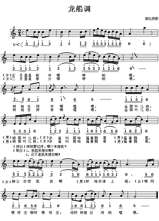 龙船调钢琴谱上传者为网友上传,原创作者为网络转载,歌曲原唱歌手为佚名,本钢琴谱为图片格式,表现形式为五线谱,音乐性质为流行金曲。