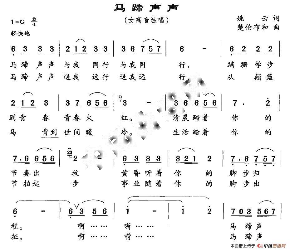 马蹄声声简谱上传者为网友上传,原创作者为网络转载,歌曲原唱歌手为佚名,本简谱为图片格式,表现形式为,音乐性质为流行金曲。