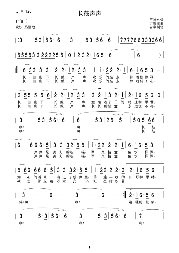 长鼓声声简谱上传者为网友上传,原创作者为网络转载,歌曲原唱歌手为佚名,本简谱为图片格式,表现形式为,音乐性质为流行金曲。