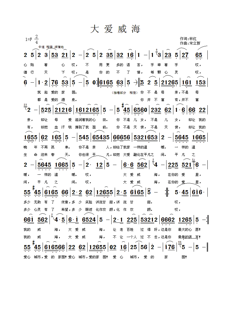 大爱威海简谱