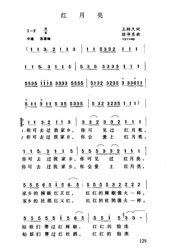 红月亮简谱