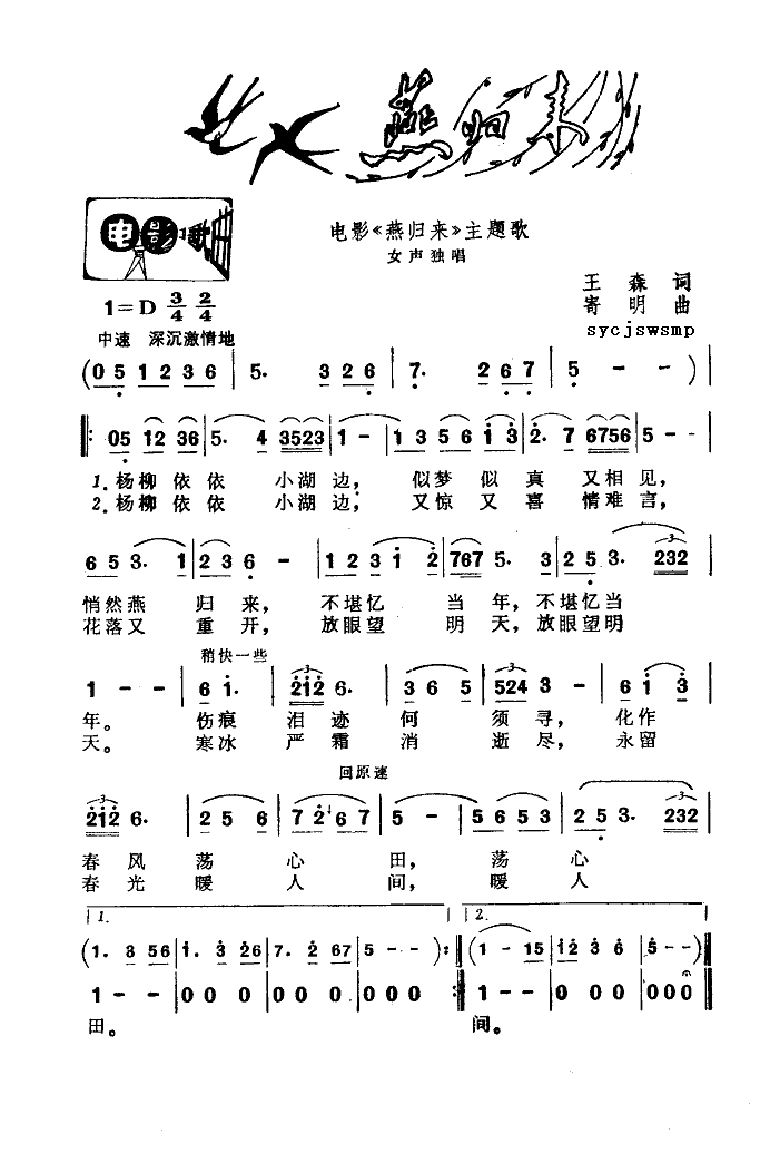 燕归来简谱上传者为网友上传,原创作者为网络转载,歌曲原唱歌手为佚名,本简谱为图片格式,表现形式为,音乐性质为流行金曲。