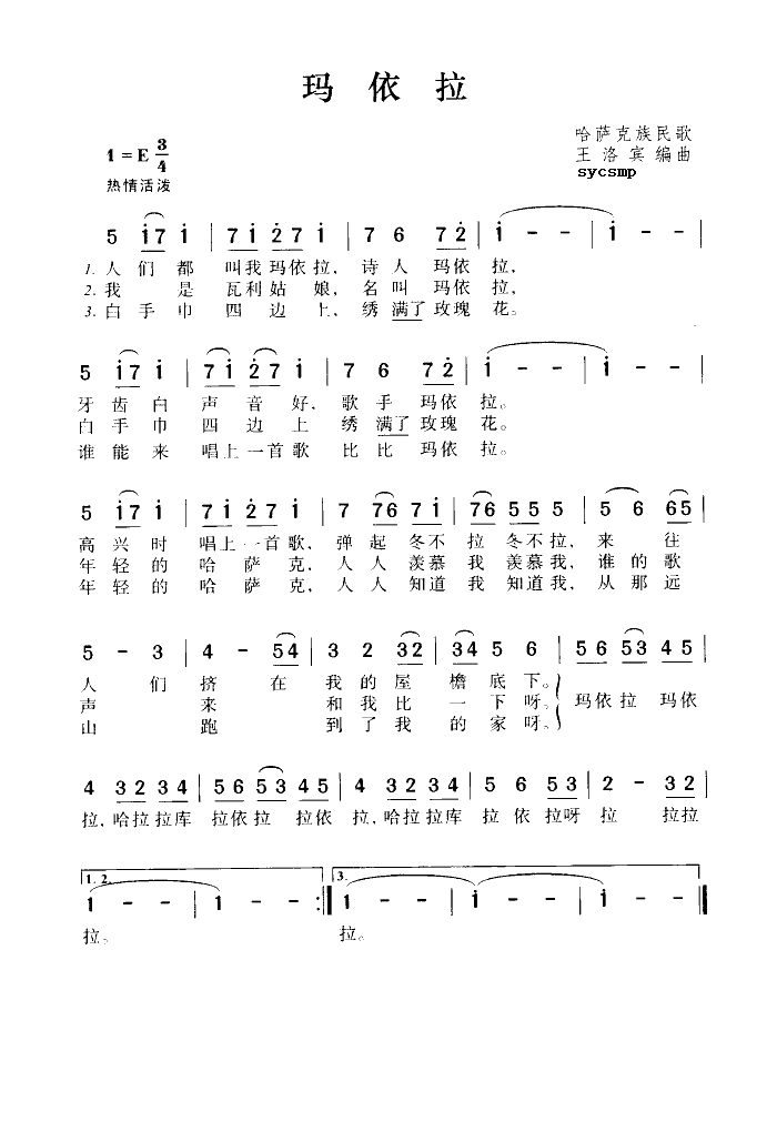 玛依拉简谱上传者为网友上传,原创作者为网络转载,歌曲原唱歌手为佚名,本简谱为图片格式,表现形式为,音乐性质为流行金曲。