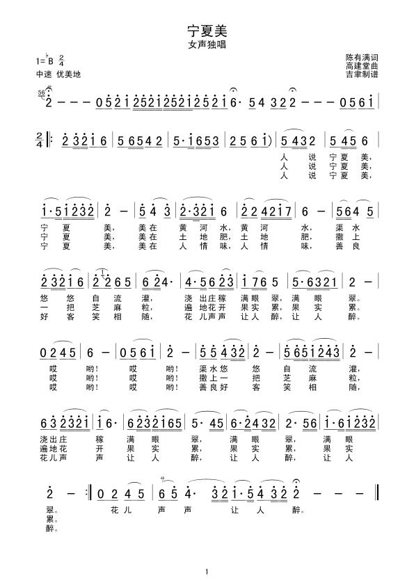 宁夏美简谱上传者为网友上传,原创作者为网络转载,歌曲原唱歌手为佚名,本简谱为图片格式,表现形式为,音乐性质为流行金曲。
