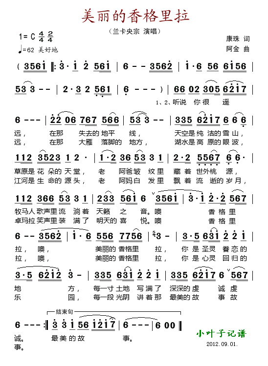 美丽的香格里拉简谱上传者为网友上传,原创作者为网络转载,歌曲原唱歌手为佚名,本简谱为图片格式,表现形式为,音乐性质为流行金曲。