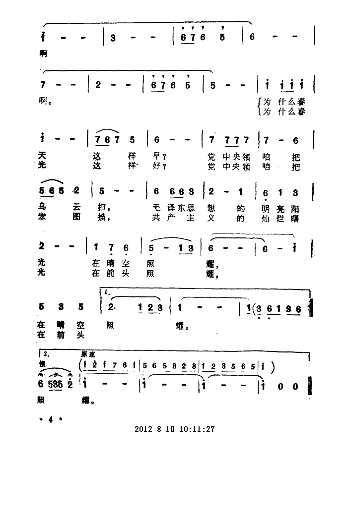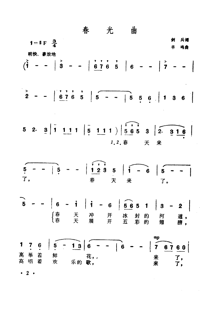 春光曲简谱上传者为网友上传,原创作者为网络转载,歌曲原唱歌手为佚名,本简谱为图片格式,表现形式为,音乐性质为流行金曲。