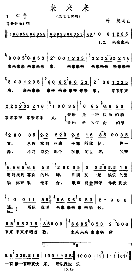来来来简谱上传者为网友上传,原创作者为网络转载,歌曲原唱歌手为佚名,本简谱为图片格式,表现形式为,音乐性质为流行金曲。