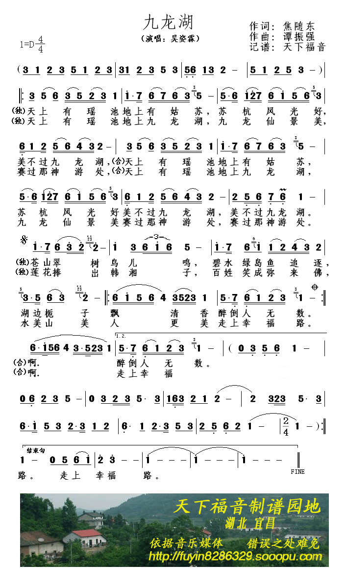 九龙湖简谱上传者为网友上传,原创作者为网络转载,歌曲原唱歌手为佚名,本简谱为图片格式,表现形式为,音乐性质为流行金曲。