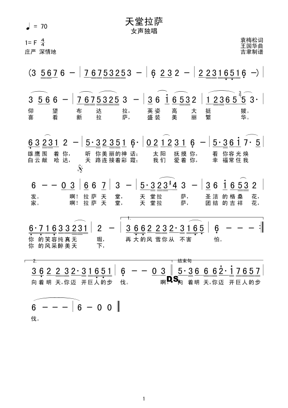 天堂拉萨简谱上传者为网友上传,原创作者为网络转载,歌曲原唱歌手为佚名,本简谱为图片格式,表现形式为,音乐性质为流行金曲。