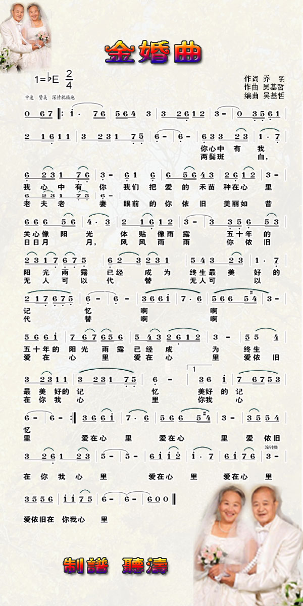 金婚曲简谱上传者为网友上传,原创作者为网络转载,歌曲原唱歌手为佚名,本简谱为图片格式,表现形式为,音乐性质为流行金曲。