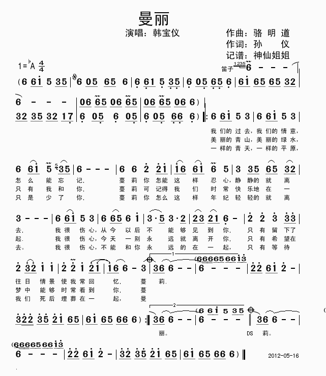 曼丽简谱上传者为网友上传,原创作者为网络转载,歌曲原唱歌手为佚名,本简谱为图片格式,表现形式为,音乐性质为流行金曲。