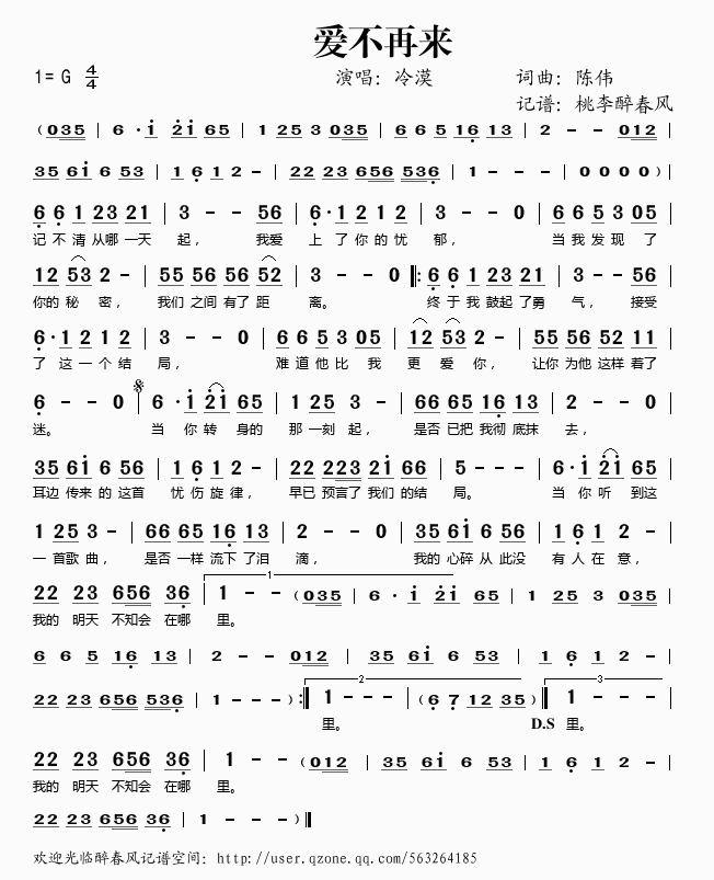 爱不再来简谱上传者为网友上传,原创作者为网络转载,歌曲原唱歌手为佚名,本简谱为图片格式,表现形式为,音乐性质为流行金曲。