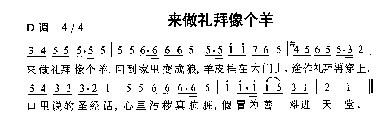 来做礼拜像个羊简谱上传者为网友上传,原创作者为网络转载,歌曲原唱歌手为佚名,本简谱为图片格式,表现形式为,音乐性质为流行金曲。