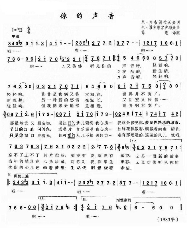 你的声音简谱上传者为网友上传,原创作者为网络转载,歌曲原唱歌手为佚名,本简谱为图片格式,表现形式为,音乐性质为流行金曲。