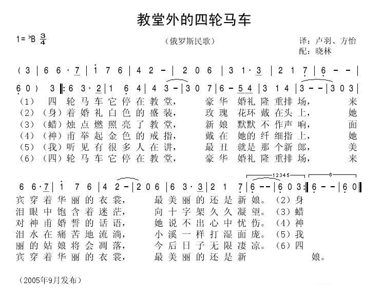 教堂外的四轮马车简谱上传者为网友上传,原创作者为网络转载,歌曲原唱歌手为佚名,本简谱为图片格式,表现形式为,音乐性质为流行金曲。