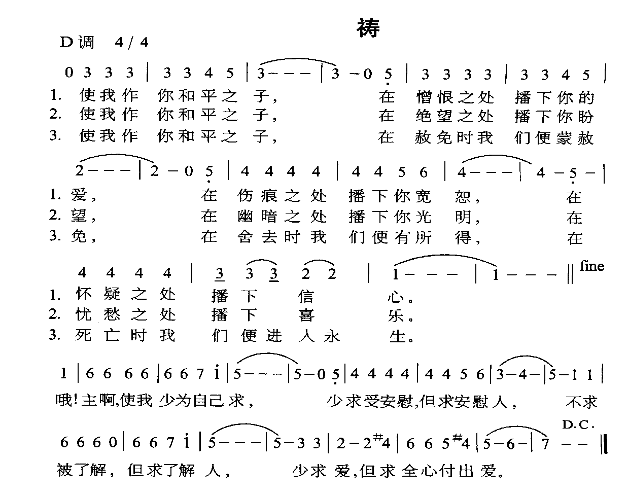 祷简谱上传者为网友上传,原创作者为网络转载,歌曲原唱歌手为佚名,本简谱为图片格式,表现形式为,音乐性质为流行金曲。