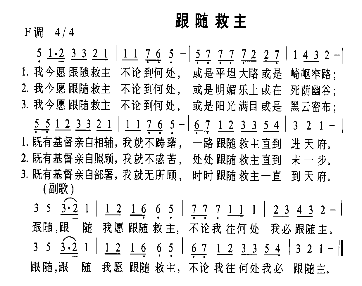 跟随救主简谱上传者为网友上传,原创作者为网络转载,歌曲原唱歌手为佚名,本简谱为图片格式,表现形式为,音乐性质为流行金曲。