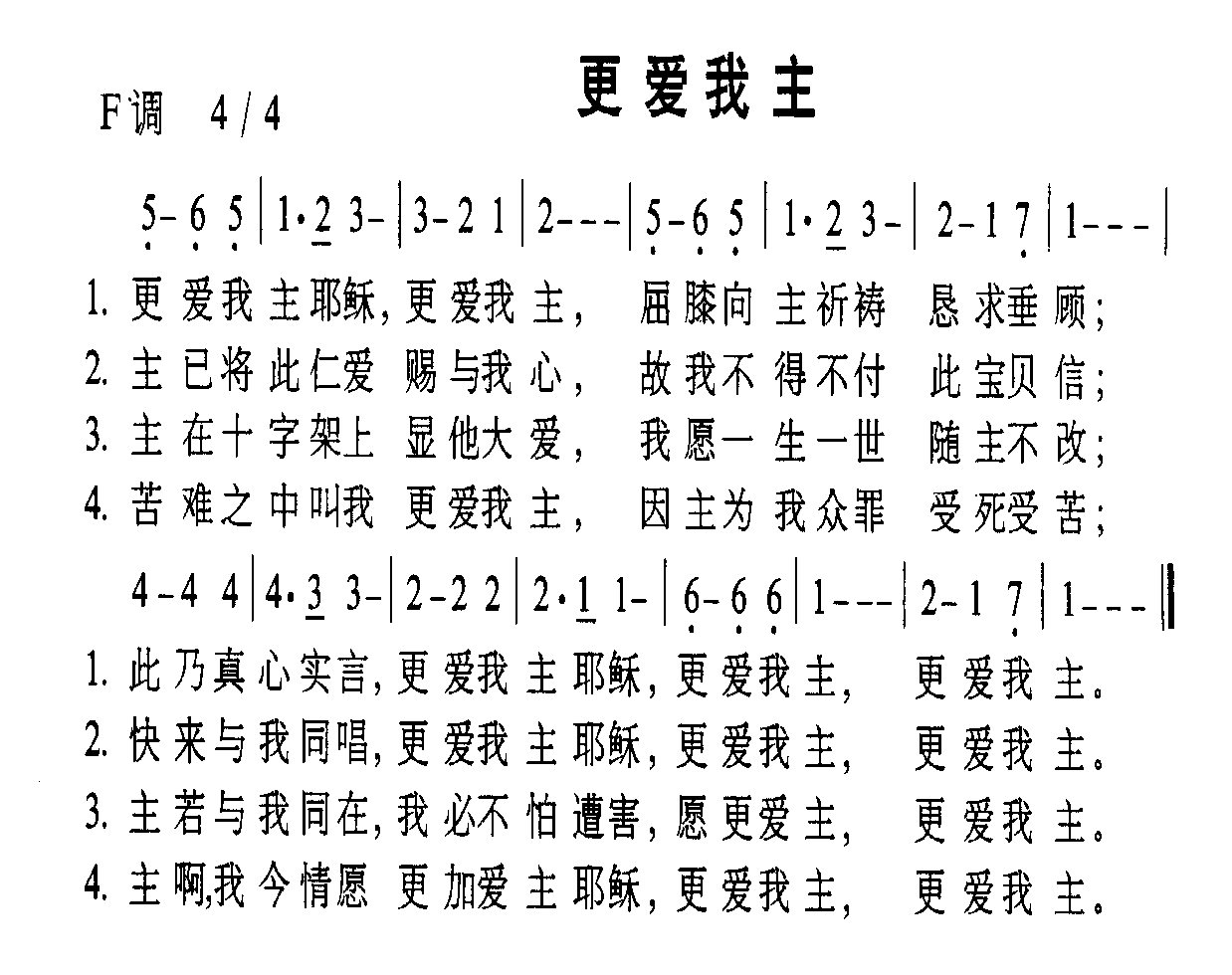 更爱我主简谱上传者为网友上传,原创作者为网络转载,歌曲原唱歌手为佚名,本简谱为图片格式,表现形式为,音乐性质为流行金曲。