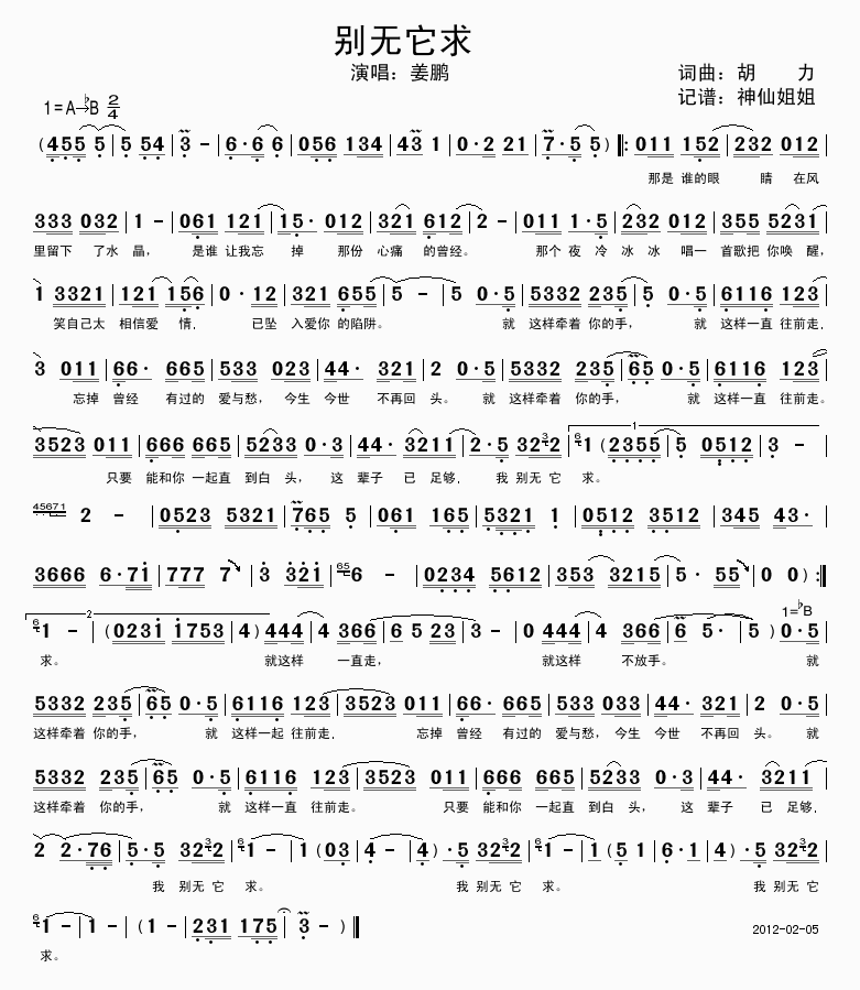 别无所求简谱上传者为网友上传,原创作者为网络转载,歌曲原唱歌手为佚名,本简谱为图片格式,表现形式为,音乐性质为流行金曲。