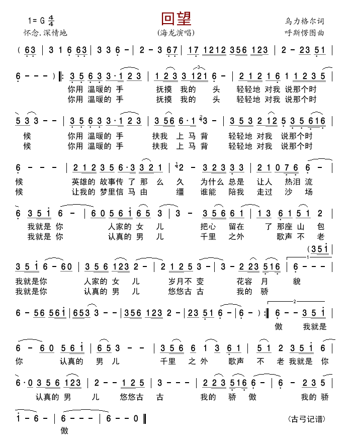 回望简谱上传者为网友上传,原创作者为网络转载,歌曲原唱歌手为佚名,本简谱为图片格式,表现形式为,音乐性质为流行金曲。