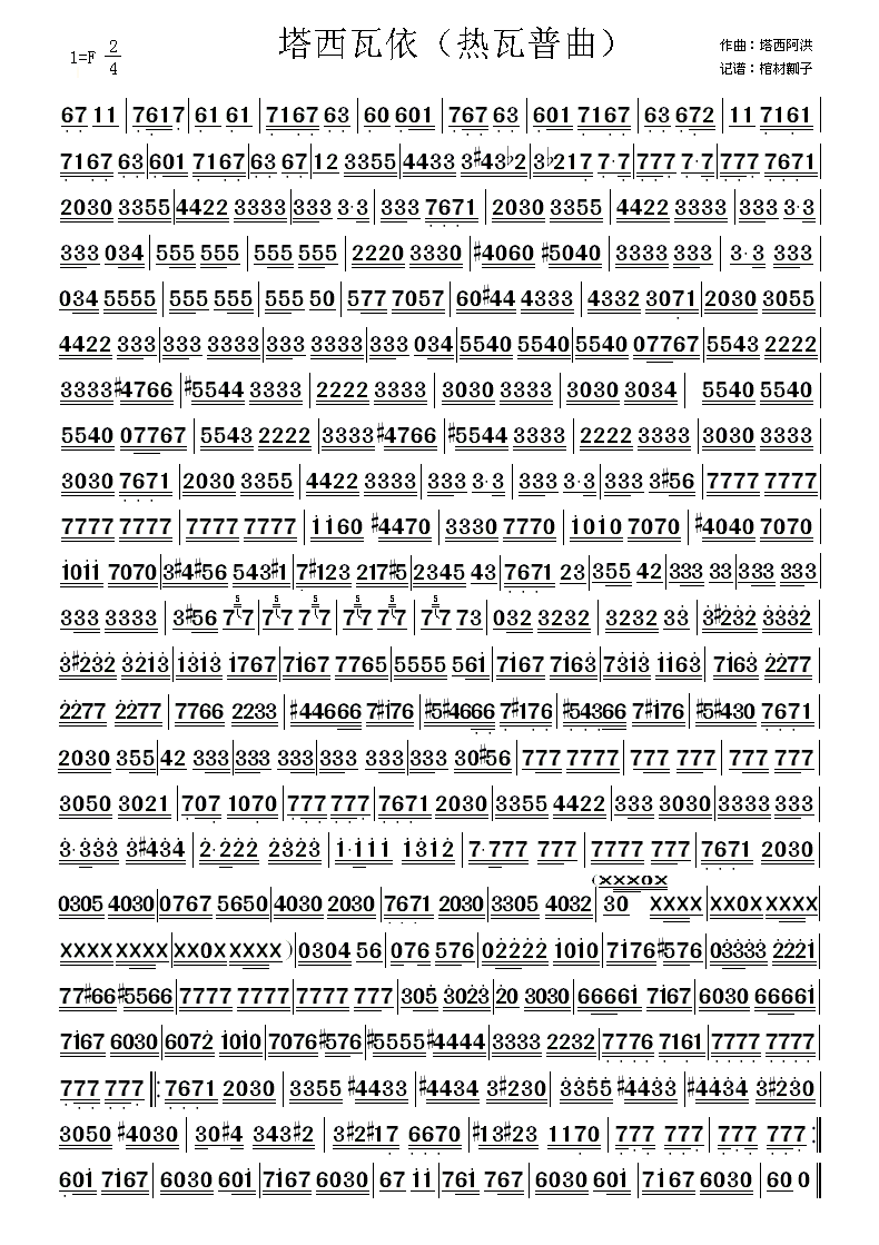 塔西瓦依(热瓦普曲)简谱上传者为网友上传,原创作者为网络转载,歌曲原唱歌手为佚名,本简谱为图片格式,表现形式为,音乐性质为流行金曲。