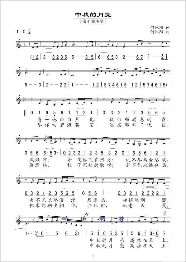 中秋的月亮简谱上传者为网友上传,原创作者为网络转载,歌曲原唱歌手为佚名,本简谱为图片格式,表现形式为,音乐性质为流行金曲。