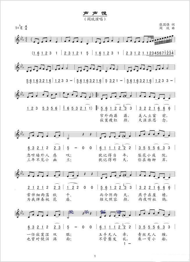 声声慢简谱上传者为网友上传,原创作者为网络转载,歌曲原唱歌手为佚名,本简谱为图片格式,表现形式为,音乐性质为流行金曲。
