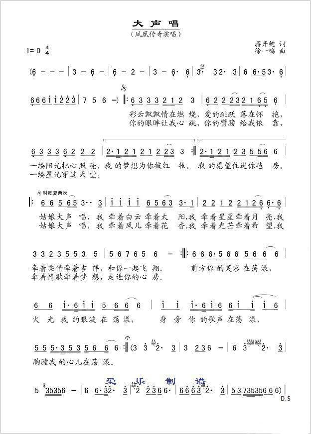 大声唱简谱上传者为网友上传,原创作者为网络转载,歌曲原唱歌手为佚名,本简谱为图片格式,表现形式为,音乐性质为流行金曲。