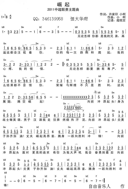 崛起简谱上传者为网友上传,原创作者为网络转载,歌曲原唱歌手为佚名,本简谱为图片格式,表现形式为,音乐性质为流行金曲。