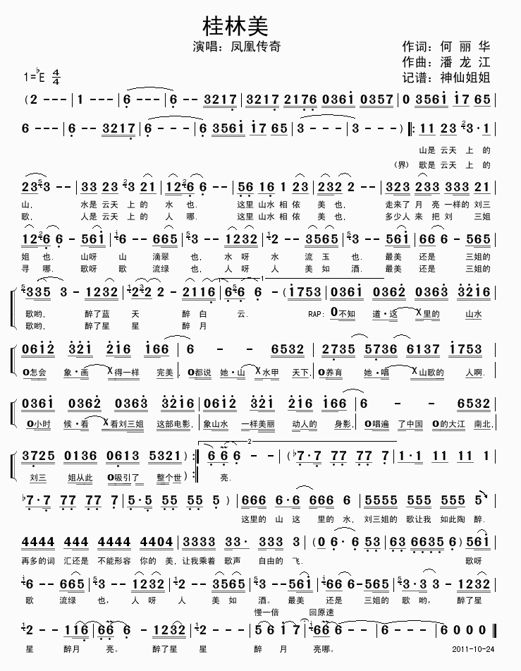 桂林美简谱上传者为网友上传,原创作者为网络转载,歌曲原唱歌手为佚名,本简谱为图片格式,表现形式为,音乐性质为流行金曲。