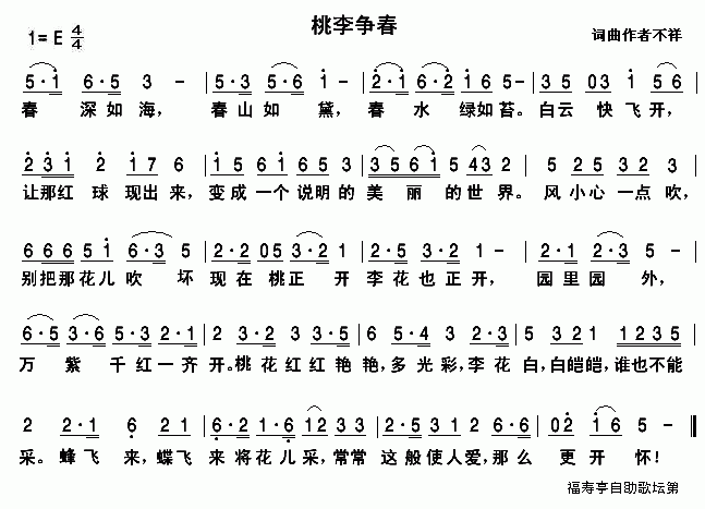 桃李争春简谱上传者为网友上传,原创作者为网络转载,歌曲原唱歌手为佚名,本简谱为图片格式,表现形式为,音乐性质为流行金曲。