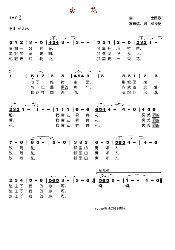 卖花简谱上传者为网友上传,原创作者为网络转载,歌曲原唱歌手为佚名,本简谱为图片格式,表现形式为,音乐性质为流行金曲。