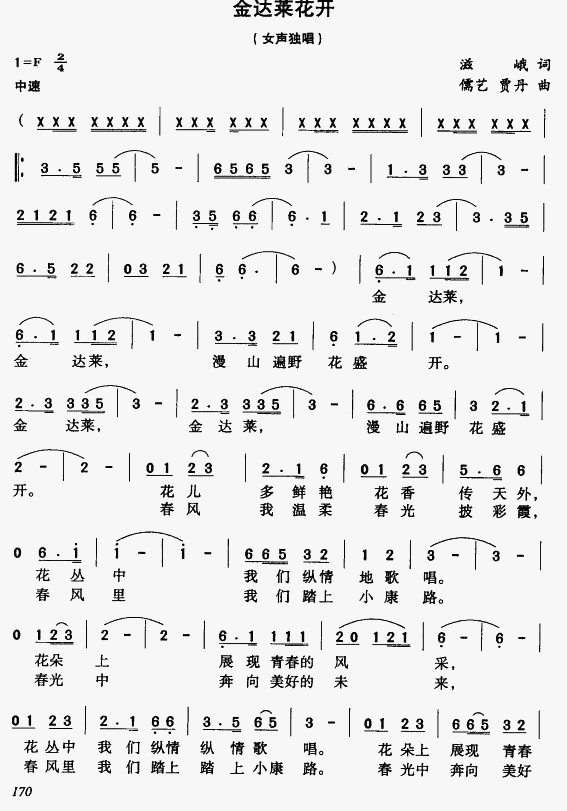 金达莱花开简谱上传者为网友上传,原创作者为网络转载,歌曲原唱歌手为佚名,本简谱为图片格式,表现形式为,音乐性质为流行金曲。
