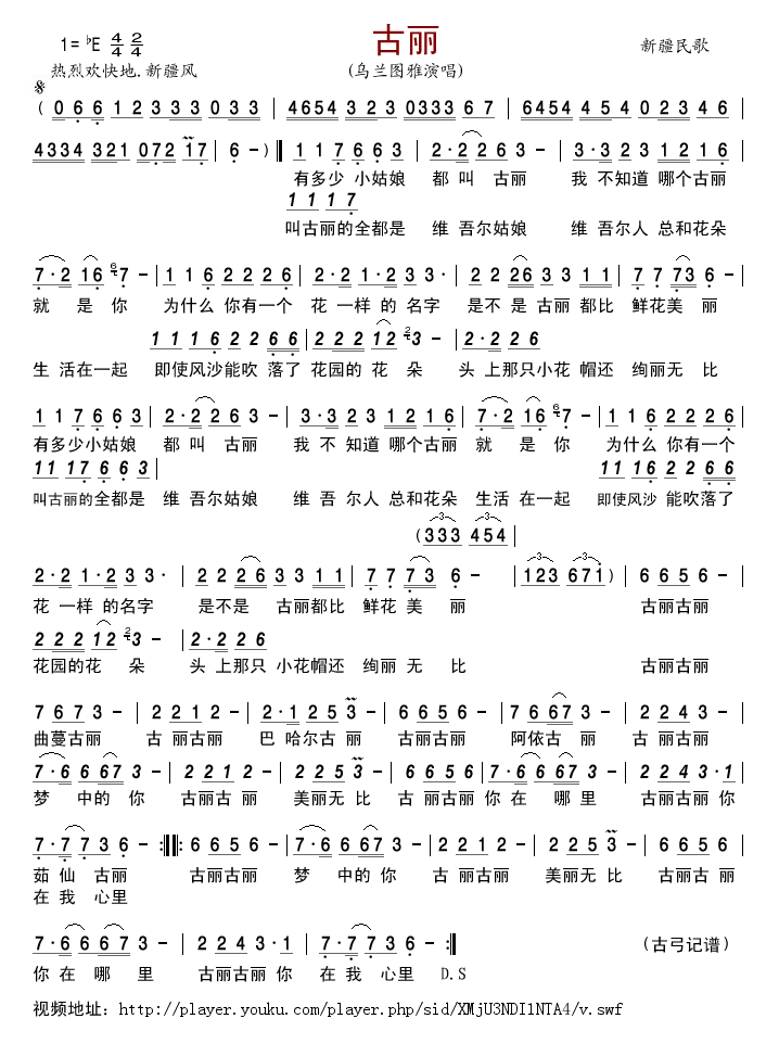 古丽简谱上传者为网友上传,原创作者为网络转载,歌曲原唱歌手为佚名,本简谱为图片格式,表现形式为,音乐性质为流行金曲。