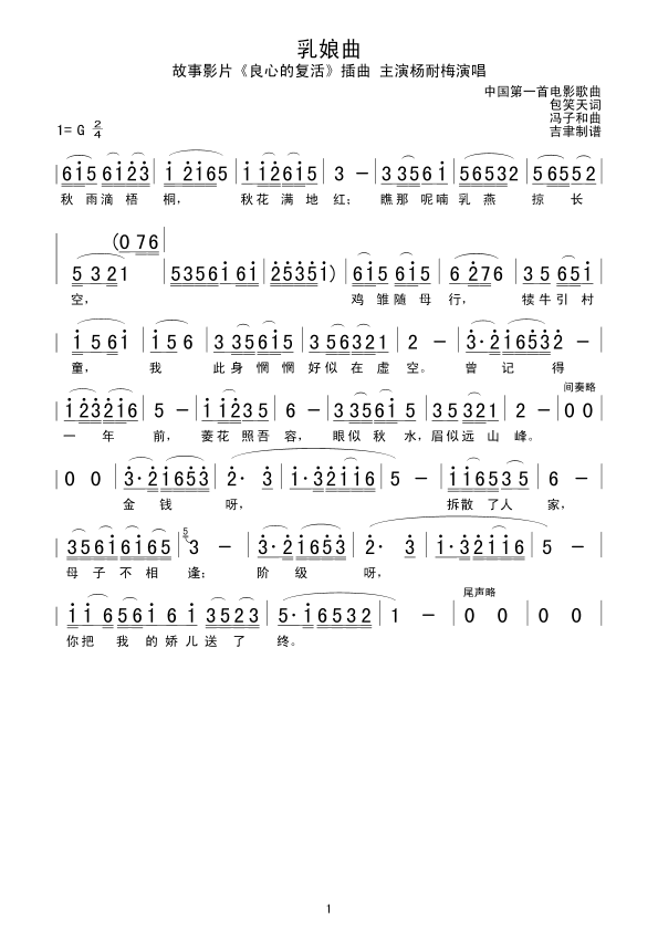 乳娘曲简谱上传者为网友上传,原创作者为网络转载,歌曲原唱歌手为佚名,本简谱为图片格式,表现形式为,音乐性质为流行金曲。