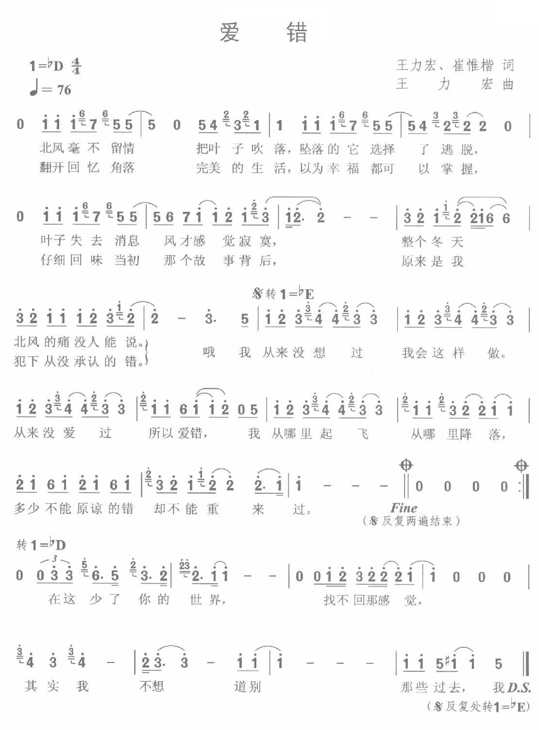 爱错简谱上传者为网友上传,原创作者为网络转载,歌曲原唱歌手为佚名,本简谱为图片格式,表现形式为,音乐性质为流行金曲。