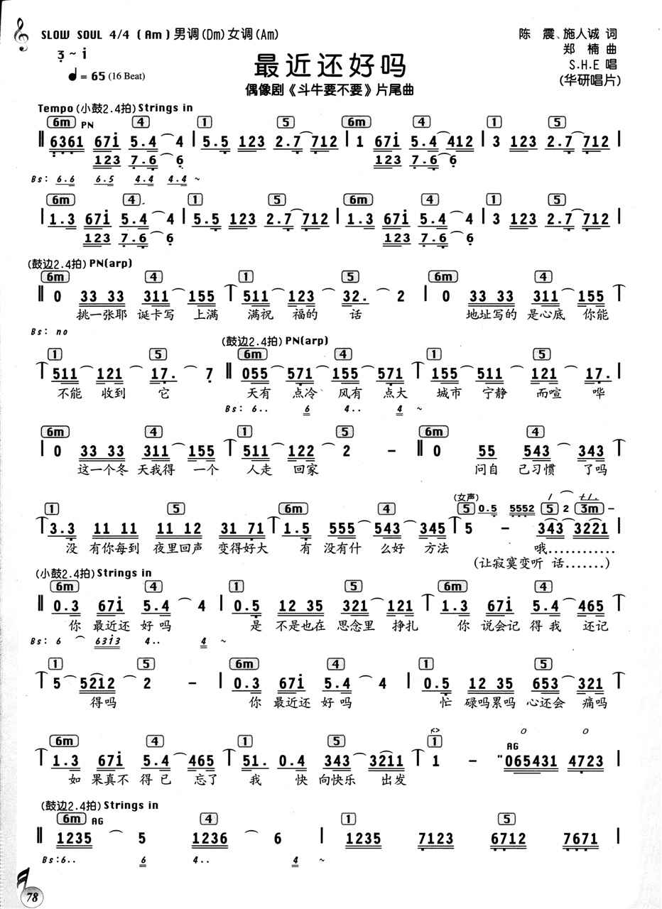 最近还好吗简谱上传者为网友上传,原创作者为网络转载,歌曲原唱歌手为佚名,本简谱为图片格式,表现形式为,音乐性质为流行金曲。