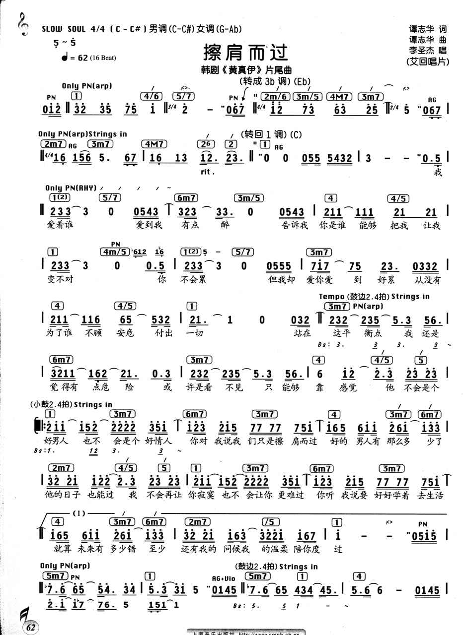 擦肩而过简谱上传者为网友上传,原创作者为网络转载,歌曲原唱歌手为佚名,本简谱为图片格式,表现形式为,音乐性质为流行金曲。