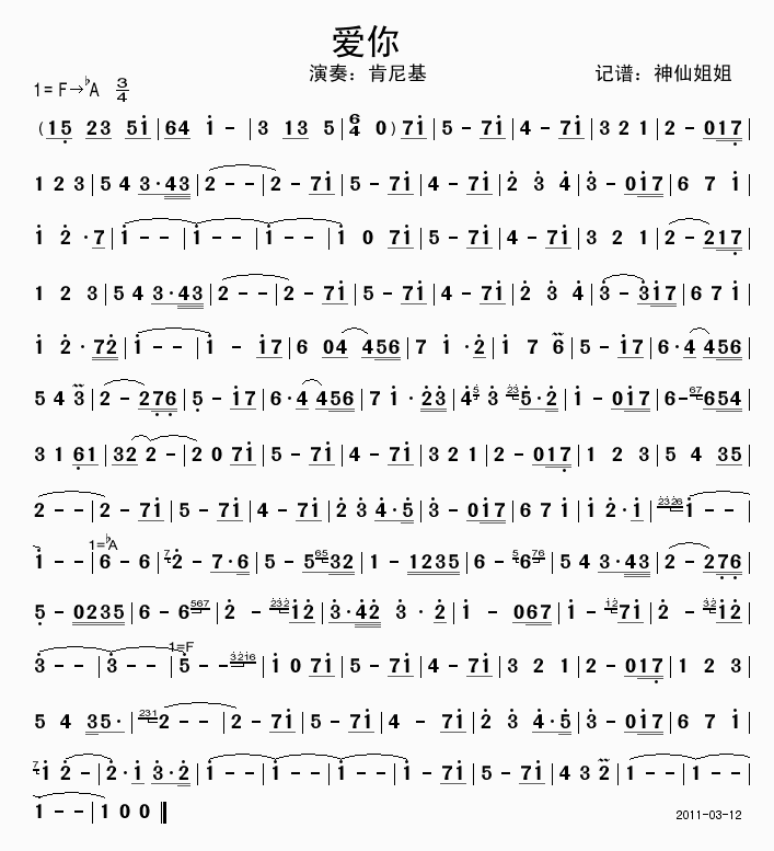 爱你 肯尼基简谱上传者为网友上传,原创作者为网络转载,歌曲原唱歌手为佚名,本简谱为图片格式,表现形式为,音乐性质为流行金曲。