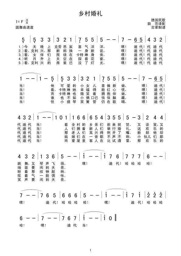 乡村婚礼简谱上传者为网友上传,原创作者为网络转载,歌曲原唱歌手为佚名,本简谱为图片格式,表现形式为,音乐性质为流行金曲。