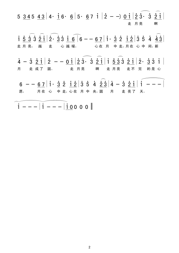 走月亮简谱上传者为网友上传,原创作者为网络转载,歌曲原唱歌手为佚名,本简谱为图片格式,表现形式为,音乐性质为流行金曲。