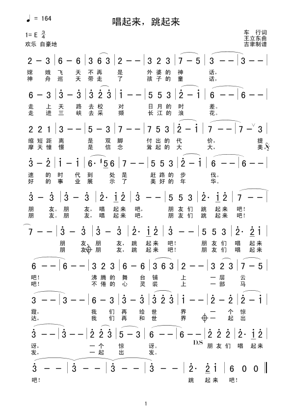 唱起来,跳起来简谱上传者为网友上传,原创作者为网络转载,歌曲原唱歌手为佚名,本简谱为图片格式,表现形式为,音乐性质为流行金曲。