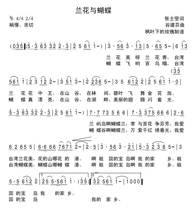 兰花与蝴蝶简谱上传者为网友上传,原创作者为网络转载,歌曲原唱歌手为佚名,本简谱为图片格式,表现形式为,音乐性质为流行金曲。