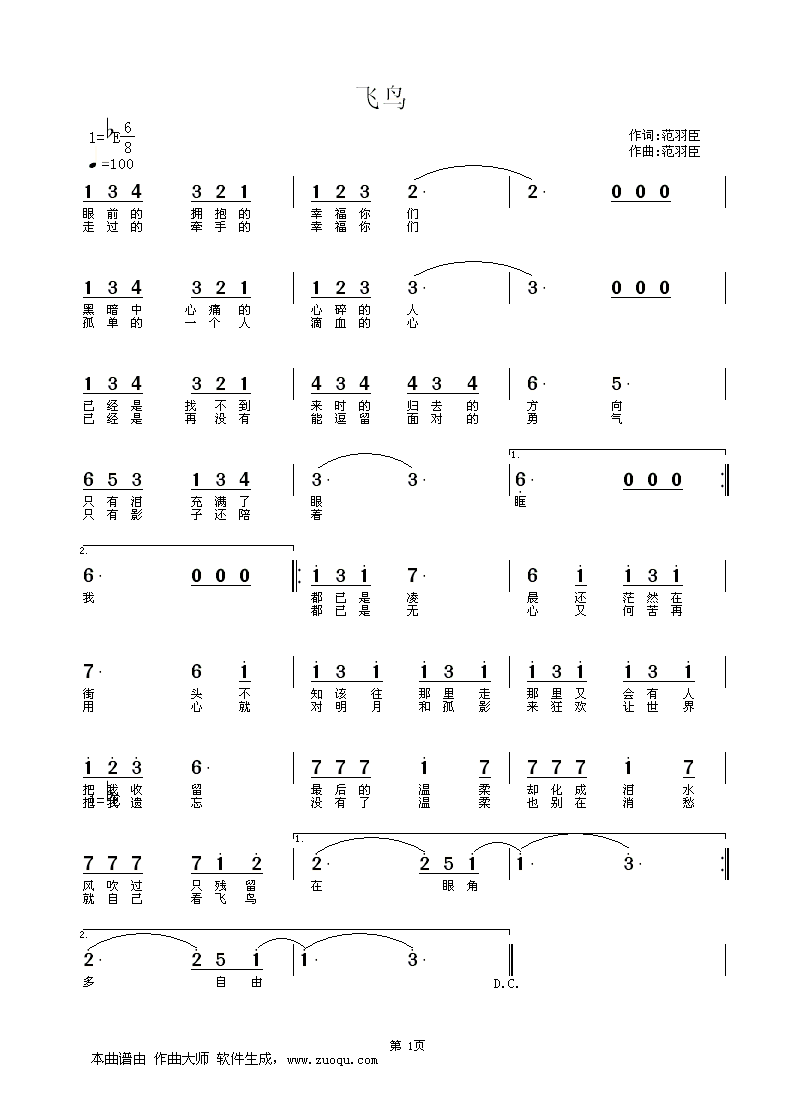 飞鸟简谱上传者为网友上传,原创作者为网络转载,歌曲原唱歌手为佚名,本简谱为图片格式,表现形式为,音乐性质为流行金曲。