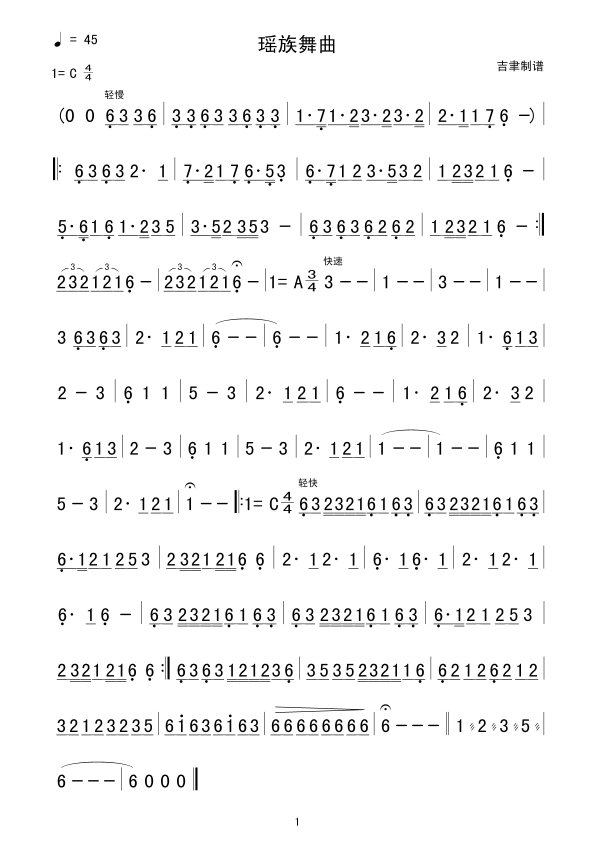 瑶族舞曲(器乐曲)简谱上传者为网友上传,原创作者为网络转载,歌曲原唱歌手为佚名,本简谱为图片格式,表现形式为,音乐性质为流行金曲。