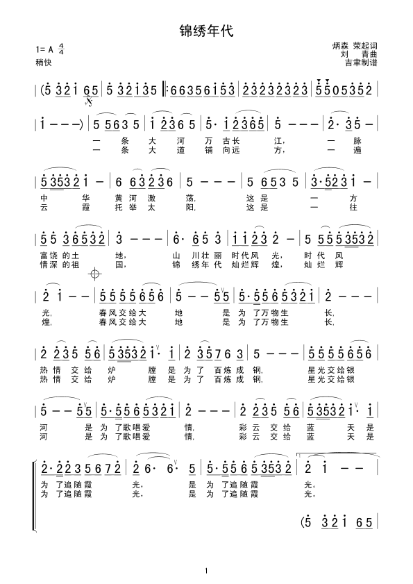 锦绣年代简谱上传者为网友上传,原创作者为网络转载,歌曲原唱歌手为佚名,本简谱为图片格式,表现形式为,音乐性质为流行金曲。