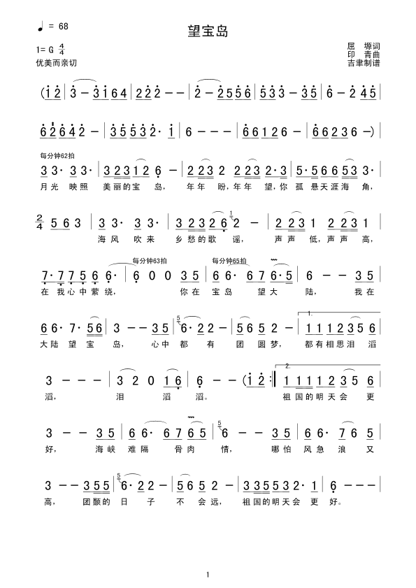 望宝岛简谱上传者为网友上传,原创作者为网络转载,歌曲原唱歌手为佚名,本简谱为图片格式,表现形式为,音乐性质为流行金曲。