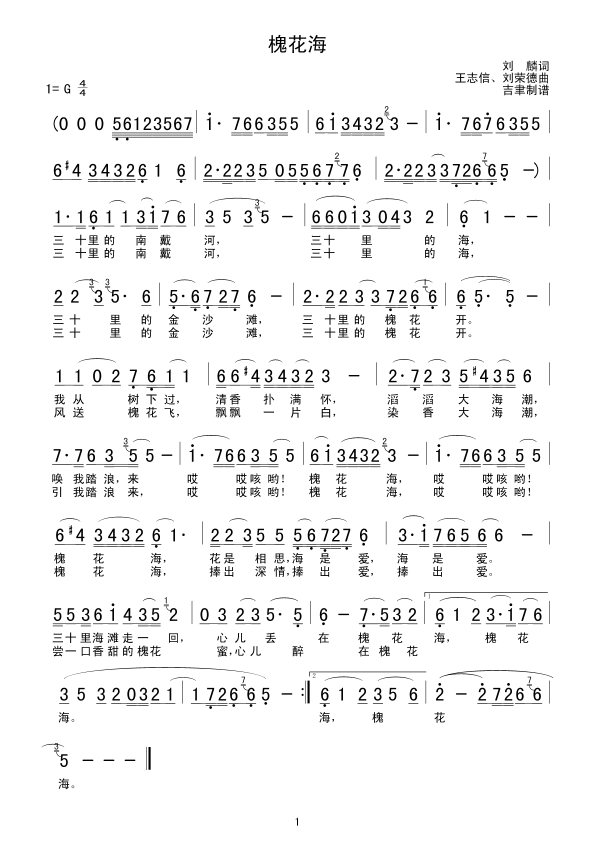 槐花海简谱上传者为网友上传,原创作者为网络转载,歌曲原唱歌手为佚名,本简谱为图片格式,表现形式为,音乐性质为流行金曲。
